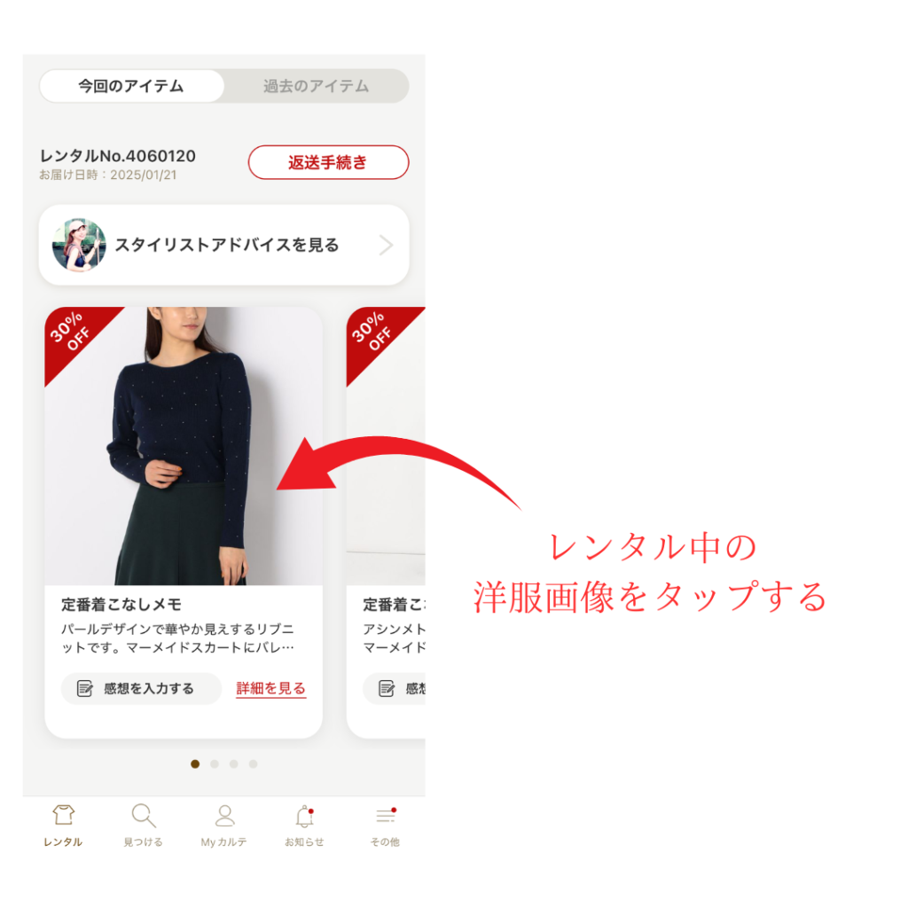 だから、返却するまでは、次のコーデが届かないから気をつけましょう。
