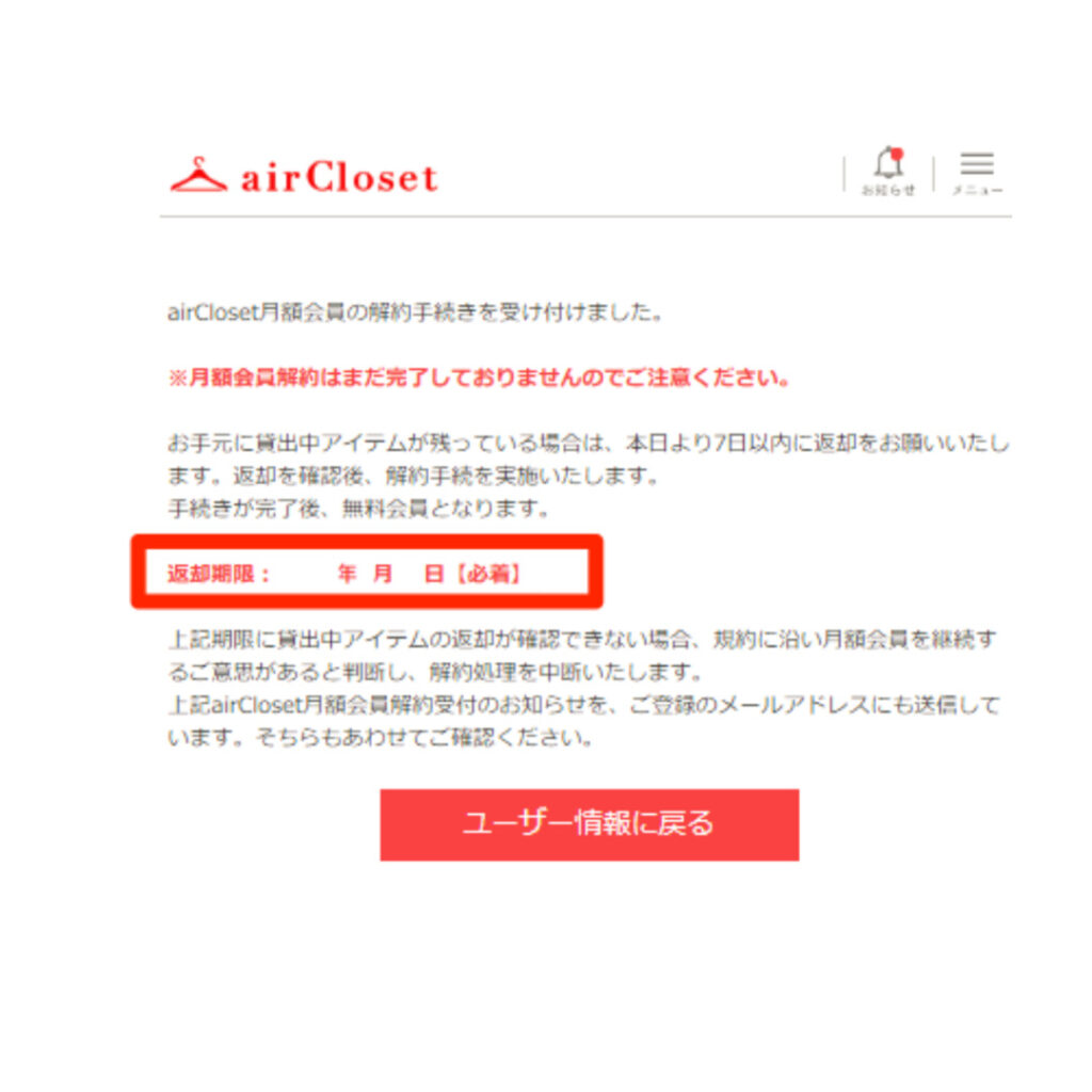無料会員になるには、エアークローゼットを解約します。