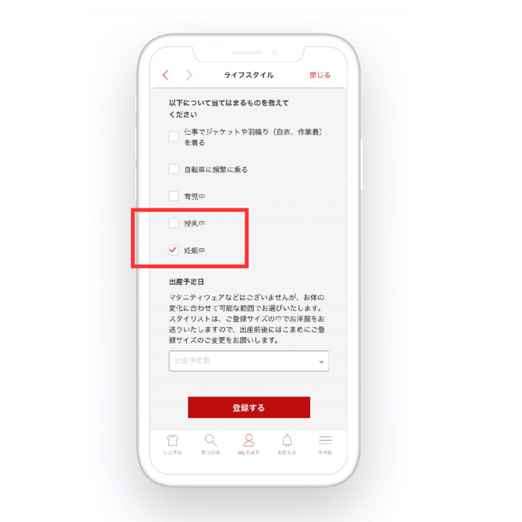 エアークローゼットでは、妊娠期間の流れを登録することができます。