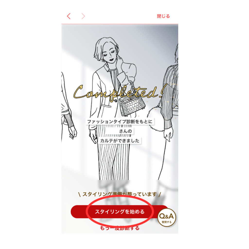 「スタイリングを始める」をタップして進めていきまいしょう。