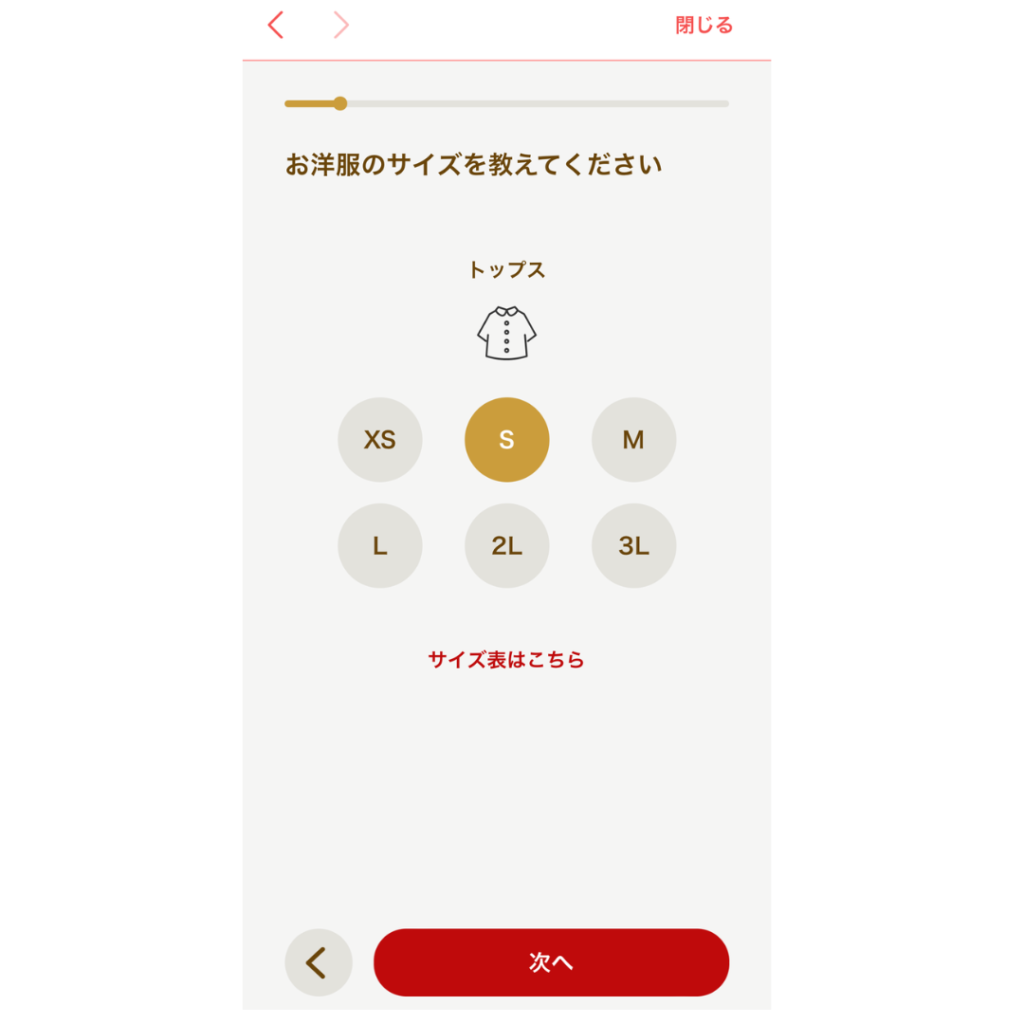 服のサイズも選ぶだけなので簡単です。
