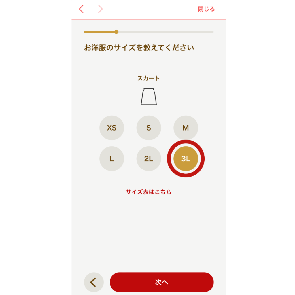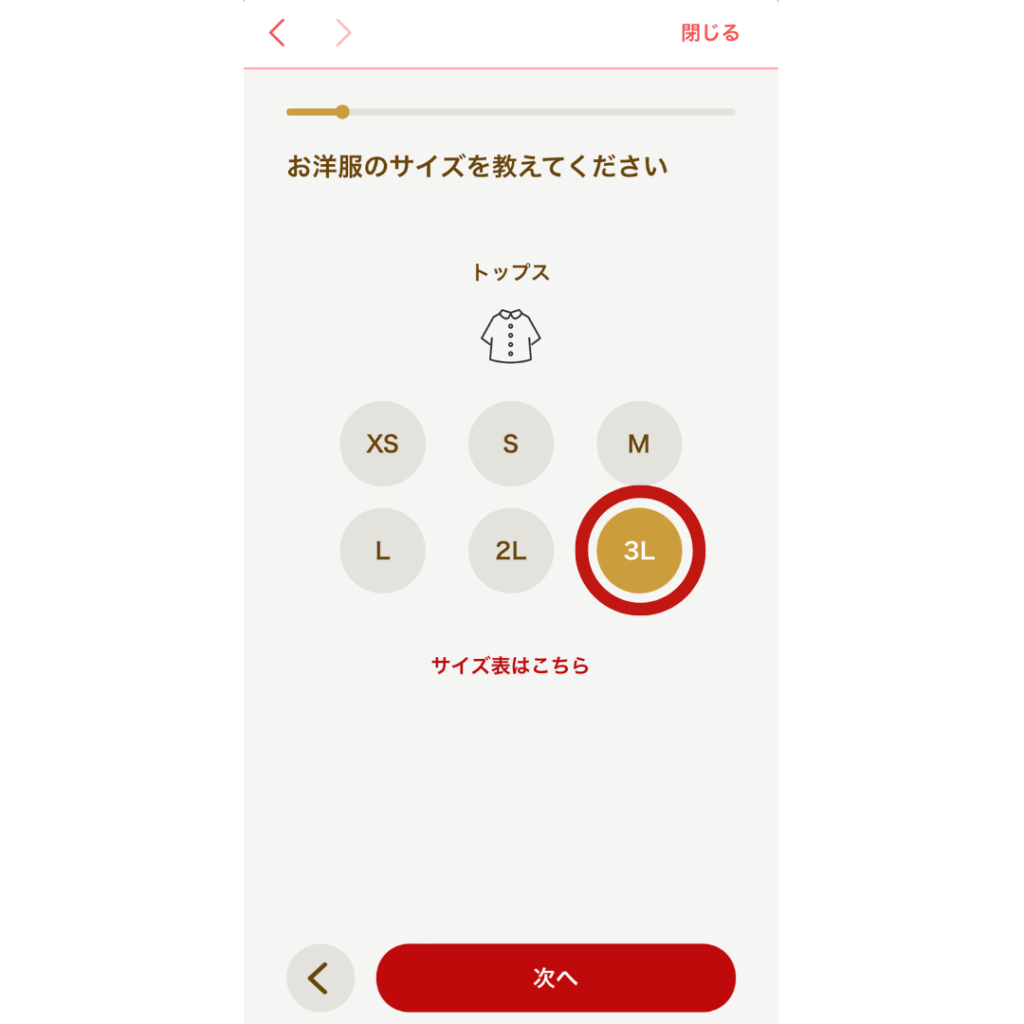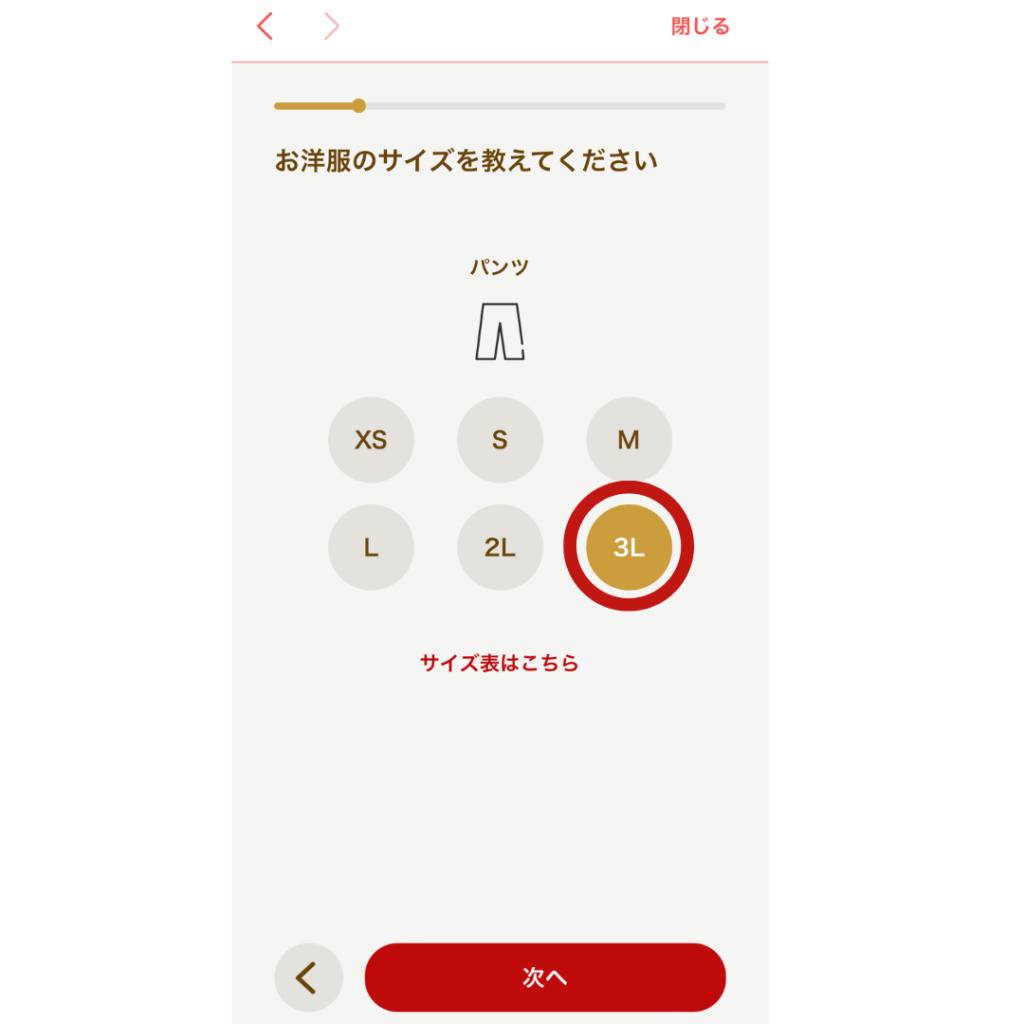自分のサイズ情報を、しっかりと入力しましょう。