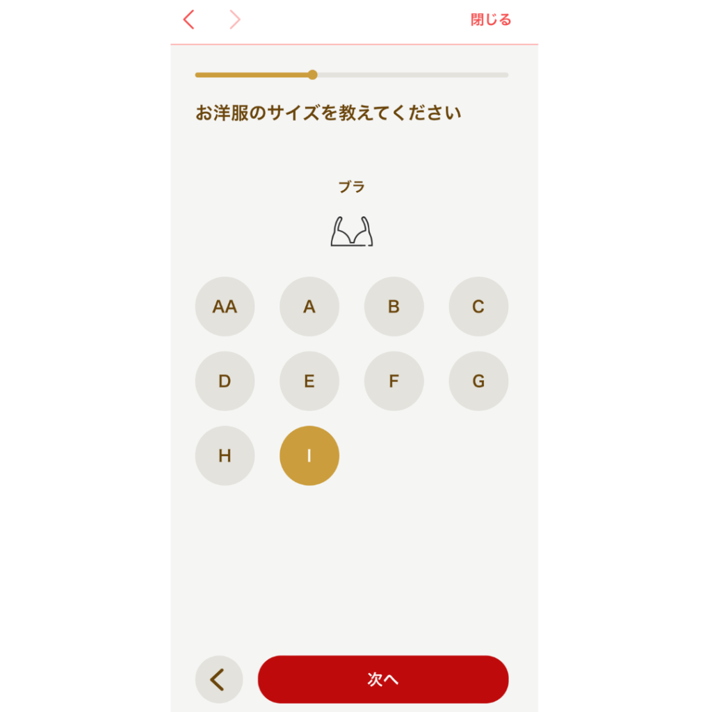最後は、下着のサイズを入力します。