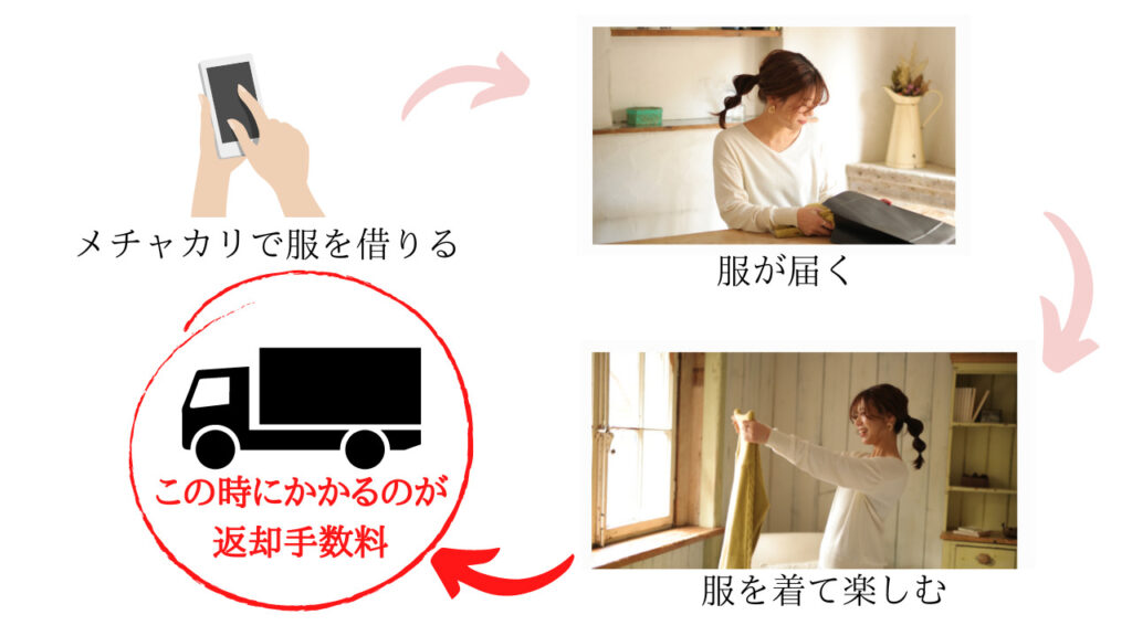 返却手数料は、メチャカリの服を着て、返す時にかかるお金のことです。