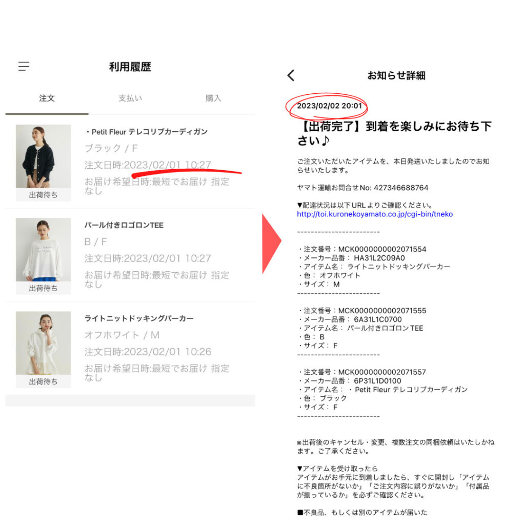 私が、注文したのは、2月1日の午前10時27分です。