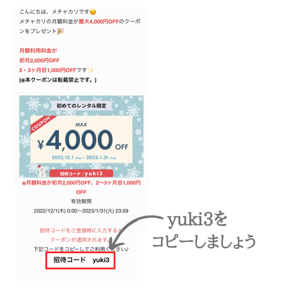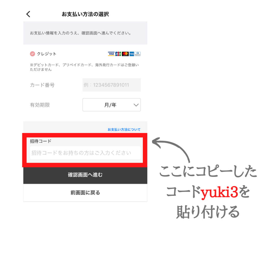 ・招待コードの入力間違いをした場合は、割引されないので注意する