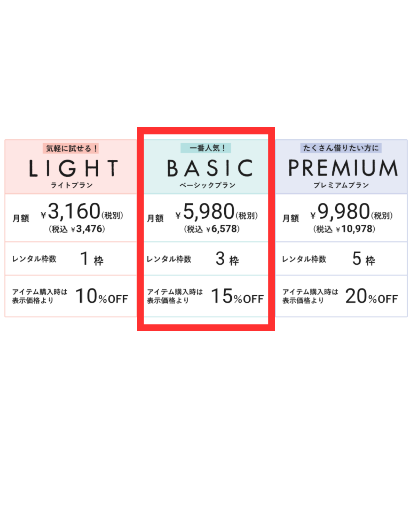 ベーシックプランは、服を買うよりも、レンタルする方が、満足できるプランになります。