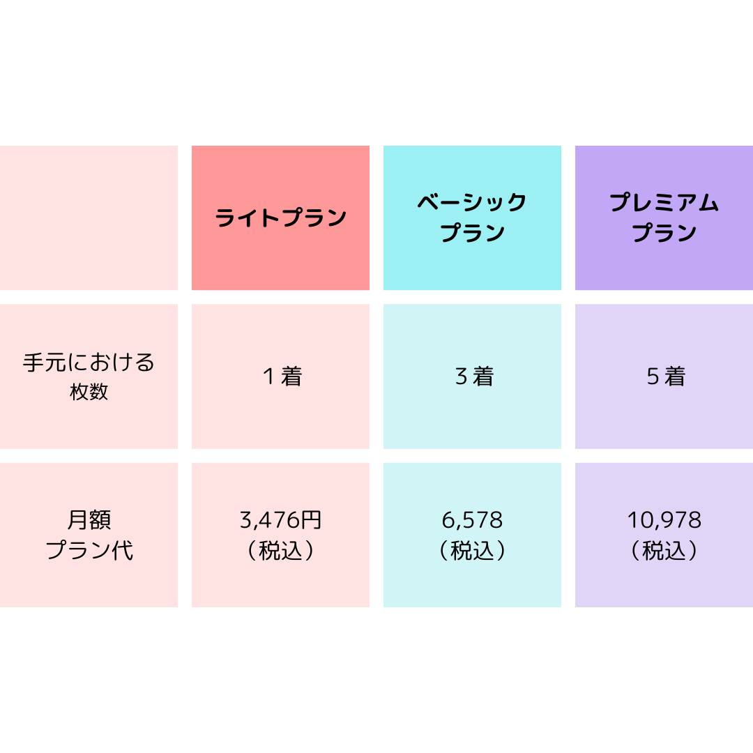 ライトプランは1回に借りれる服が1着だけですが借り放題できて3278円なのでお得なプランです。