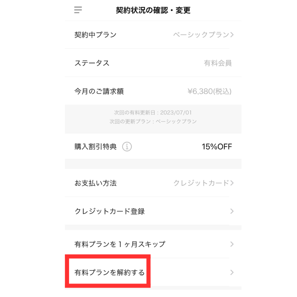 「次回の有料更新日」にある日に有料会員が更新されます。