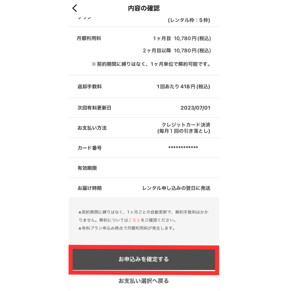 アップグレードしたプランの内容を確認したらお申し込みを確定をタップすればプランの変更が完了になります。