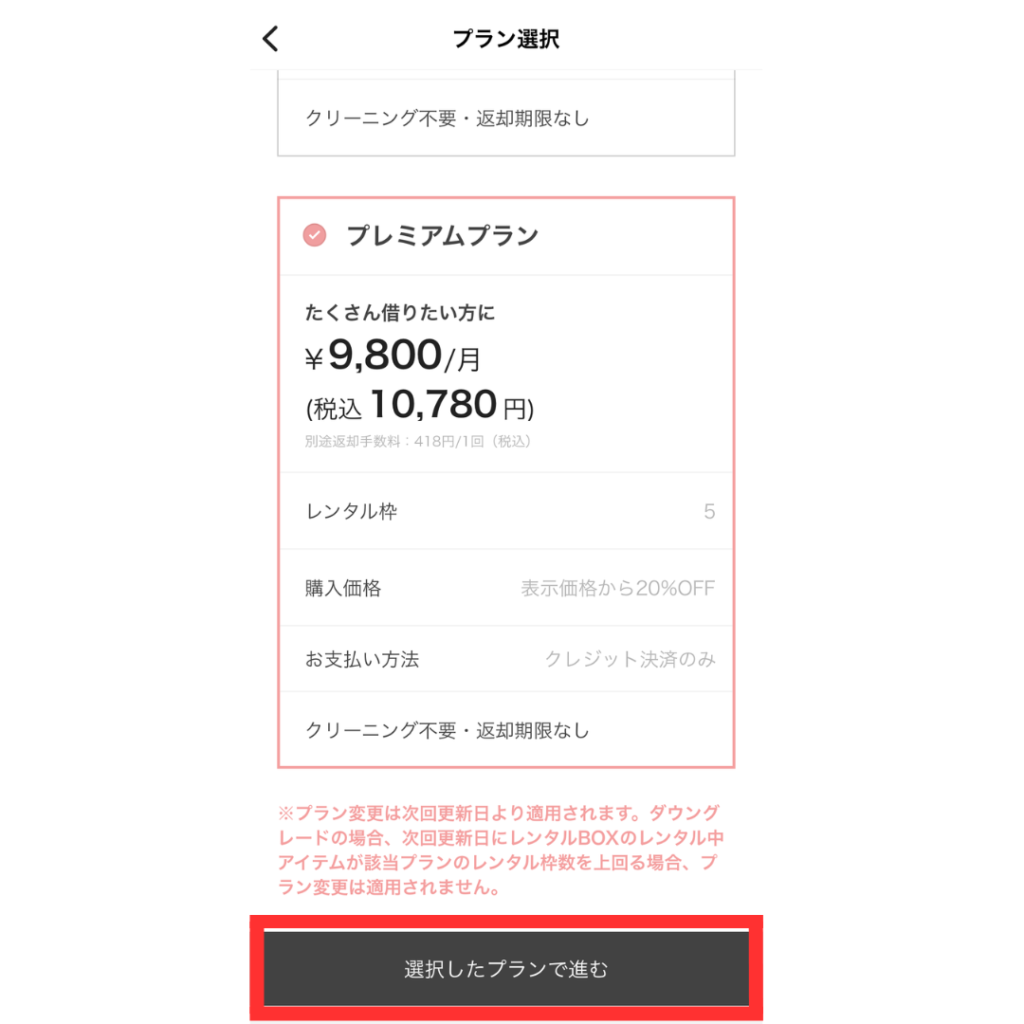プラン変更するときは更新日とダウングレードする場合は借りている服を返却する必要があるので気をつけましょう。