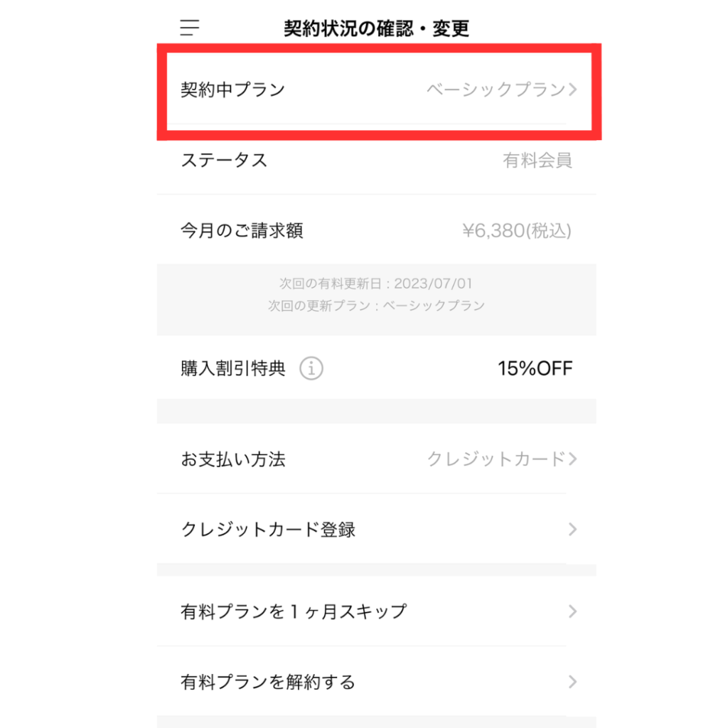 - 契約中プランをタップ