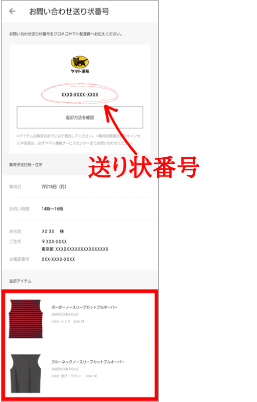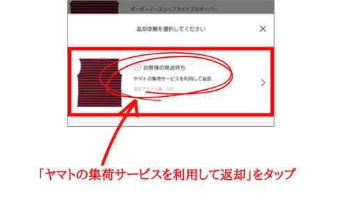 「ヤマトの集荷サービスを利用して返却」をタップします。