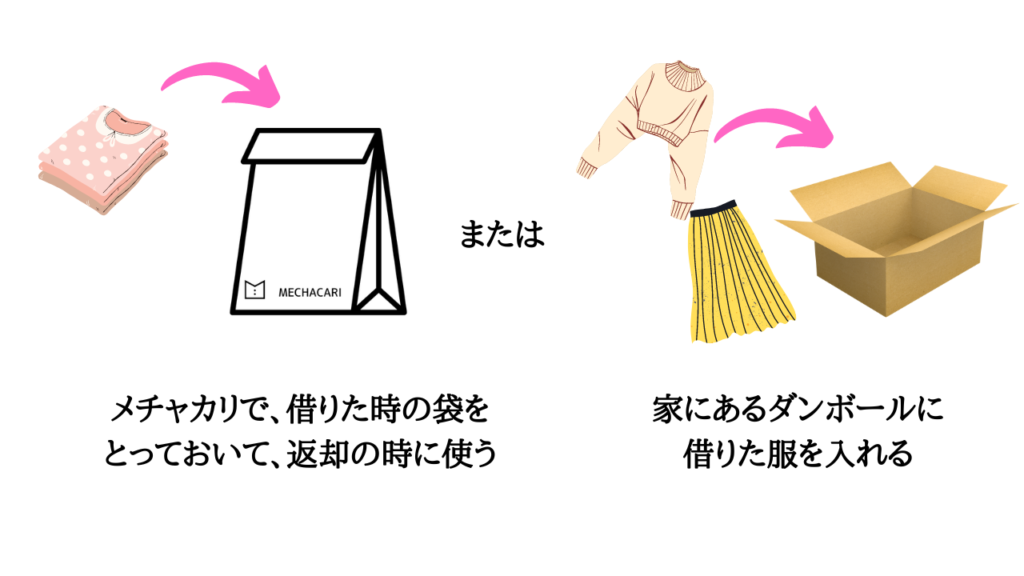 メチャカリで、服を返却する時は、必ずメチャカリのアプリからします。