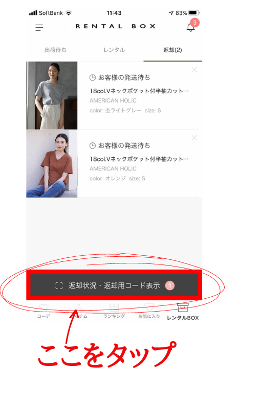 返却する洋服を、選択しましょう。